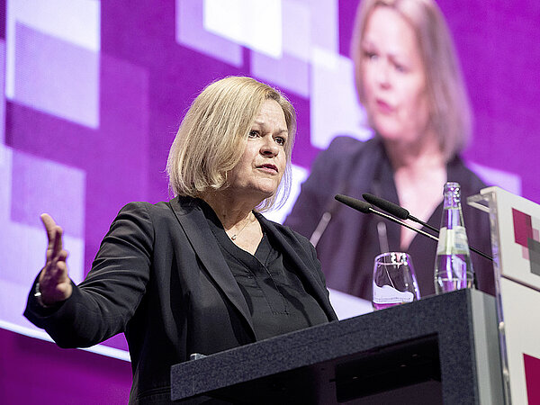 Für einen funktionierenden Staat braucht es die Beschäftigten des öffentlichen Dienstes, betonte Geyer. „Gute Bezahlung! Gute Arbeitsbedingungen! Das muss Priorität haben!“ An die anwesende Bundesinnenministerin Nancy Faeser gewandt bekräftigte Geyer die Forderungen für die anstehende Einkommensrunde: „Natürlich fordern wir mehr Geld für die Beschäftigten, aber wir wollen diesmal auch mehr Arbeitszeitsouveränität und Entlastung.“ Eine Entlastung der Beschäftigten im öffentlichen Dienst stellt auch der Abbau überflüssiger Bürokratie dar. „So banal es klingt, aber: Gute Beschäftigte kosten Geld. Eine konsequente Digitalisierung kostet Geld.“ Die Forderung nach mehr Investitionen in den öffentlichen Dienst bildet auch die Erwartungen der Menschen an die Finanz- und Haushaltspolitik der kommenden Bundesregierung ab. Investitionen in den Ausbau der staatlichen Daseinsfürsorge, wie etwa in Bildung, Sicherheit und Infrastruktur, halten nach der vom dbb in Auftrag gegebenen forsa-Umfrage 67 Prozent der Bevölkerung für sehr wichtig. Demgegenüber halten nur 20 Prozent der Befragten die Beibehaltung der Schuldenbremse und den Abbau von Altschulden oder allgemeine Steuersenkungen für sehr wichtig. „Die Menschen wollen keinen Schuldenfetisch, die Menschen wollen Straßen, Schulen und Schutzpolizei“, fasste Geyer die frisch veröffentlichten Umfrageergebnisse zusammen.