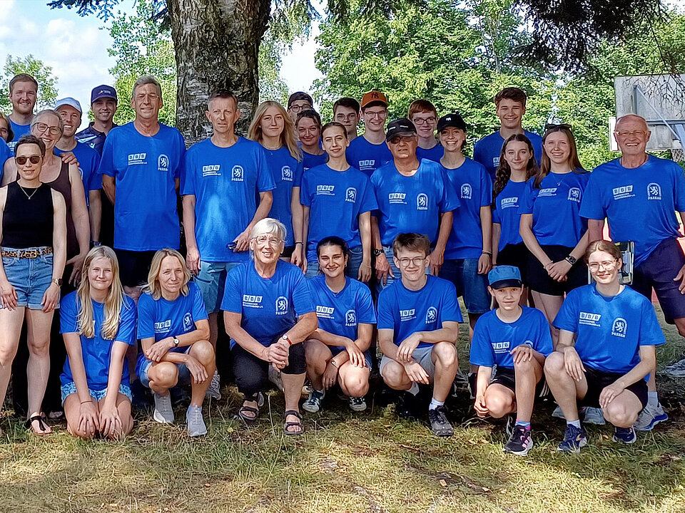 Ein Großteil der knapp 50 Kampfrichter und Helfer der LG Passau, die für den ordnungsgemäßen Ablauf der Traditionsveranstaltung sorgten, mit Sportfest-Leiter Siegfried Kapfer (stehend 1. v. re.)