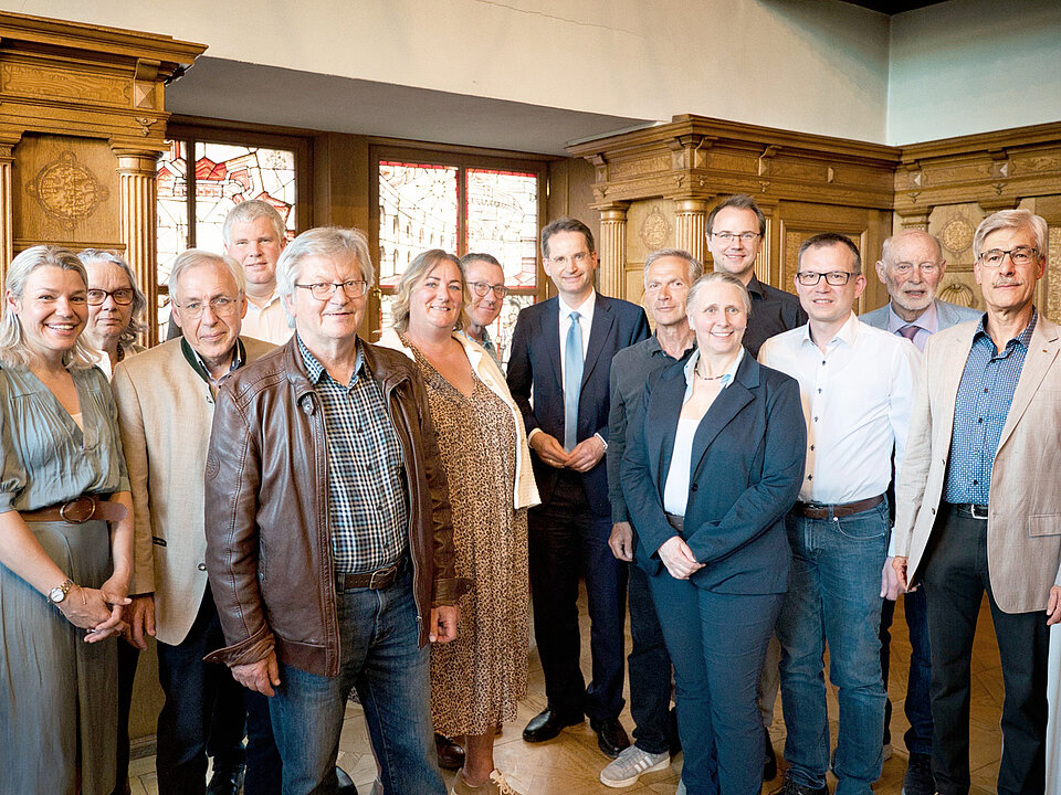 Vertreter des BBB-Kreisausschusses beim Gewerkschaftsempfang im Alten Rathaus mit OB Dr. Michael Kern (Bildmitte).