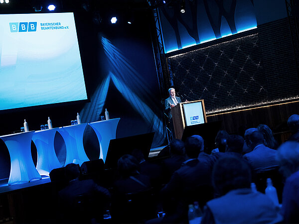 Ulrich Silberbach freute sich über die stets konstruktive Zusammenarbeit des BBB mit dem dbb beamtenbund und tarifunion. Er führte aus, dass es beim Bund auch vier Jahre nach den Beschlüssen des Bundesverfassungsgerichts trotz mehrfacher Gesetzesentwürfe noch keine verfassungsgemäße Alimentation gäbe. Auch die Nachwuchsgewinnung sei im Bund ein großes Thema. Man blicke hier immer gerne nach Bayern, um sich dort die Vorschläge zur Problemlösung anzusehen. Beim Bund spiele Teilzeitbeschäftigung eine wichtige Rolle, da die Kinderbetreuung in weiten Teilen nicht gewährleistet, und die Vereinbarkeit von Familie und Beruf oft nur mit einer Teilzeitbeschäftigung möglich sei. Auch Pflege der Angehörigen dürfe hierbei nicht vernachlässigt werden. Ferner müsse die Digitalisierung vorangebracht werden.