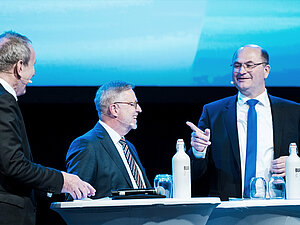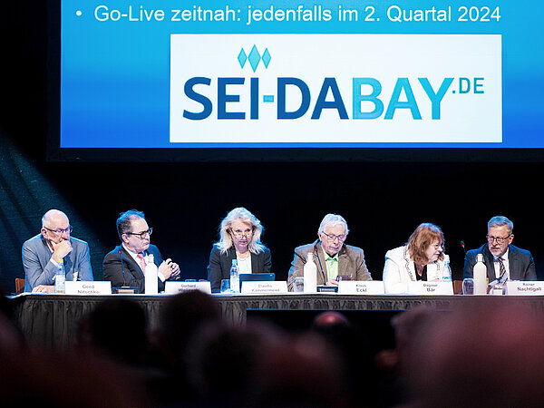 Im Rahmen der Podiumsdiskussion befragte Moderator Tilmann Schöberl Staatsminister Albert Füracker, MdL, Dr. Martin Brunnhuber, MdL (Freie Wähler), Alfred Grob, MdL (CSU), Julia Post, MdL (Bündnis 90/Die Grünen), Arif Taşdelen, MdL (SPD) und Rainer Nachtigall.
