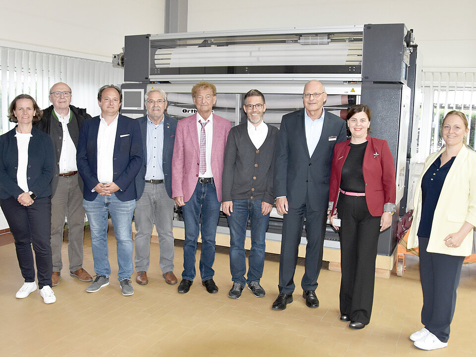 Im Bild: Sandra Schneider (Wirtschaftsförderung Landratsamt), Landrat Martin Neumeyer, zweiter BBB-Vorsitzender Thomas Daffner, Willi Dürr (DGB-Vorsitzender), BBB-Kreisvorsitzender Wolfgang Brey, BLLV-Kreisvorsitzender Michael Brucker, Rainer Mestermann (Geschäftsführer), Aurica Greenwood- Mahlo und Sabine Haunschild (Wirtschaftsförderung Landratsamt)