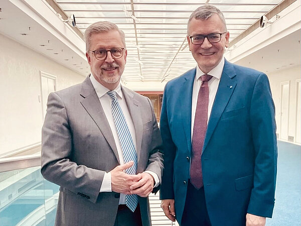 MdL Josef Zellmeier, Vorsitzender des Haushaltsausschusses, und MdL Klaus Holetschek, CSU-Fraktionsvorsitzender