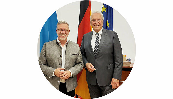 Mit dem Bayerischen Staatsminister des Inneren, für Sport und Integration Joachim Herrmann traf sich BBB-Chef Rainer Nachtigall, um sich über zahlreiche aktuelle Themen zu unterhalten: Stellenabbau, Teilzeit, die anstehenden Haushaltsverhandlungen standen auf der Agenda. Aber auch die Rahmenbedingungen zur Durchführung von Diplomierungsfeiern im Zuständigkeitsbereich des Ministeriums waren Thema.