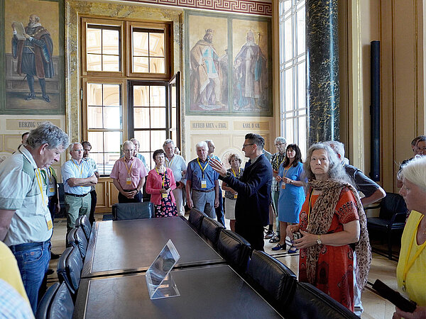 Zunächst ging es bei schönem Wetter mit dem Bus von Traunstein in die Landeshauptstadt. Dort empfing Dr. Martin Brunnhuber die Teilnehmer in der Halle des Bayerischen Landtags und informierte bei einem Rundgang durch das Gebäude über die räumlichen Seiten des Landtags einschließlich des Plenarsaals. Derzeit finden einige bauliche Veränderungen am Landtagsgebäude statt. Anschließend genossen die Teilnehmer das Mittagessen in der Landtagsgaststätte.